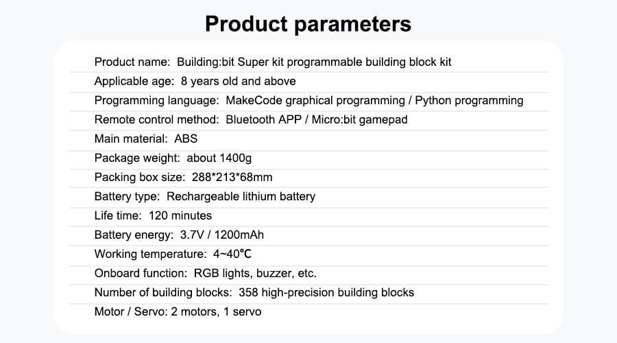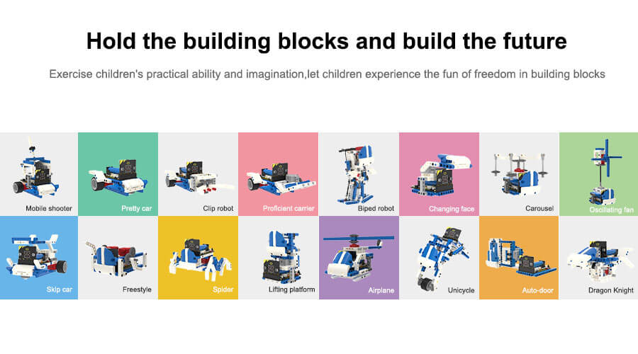 We combine building blocks with electronic devices to bring your building blocks to life, and it can also play music and realize colourful lights. On the one hand, it allows children to learn to program. On the other hand, it can also cultivate children's practical ability and stimulate creativity by assembling building blocks.