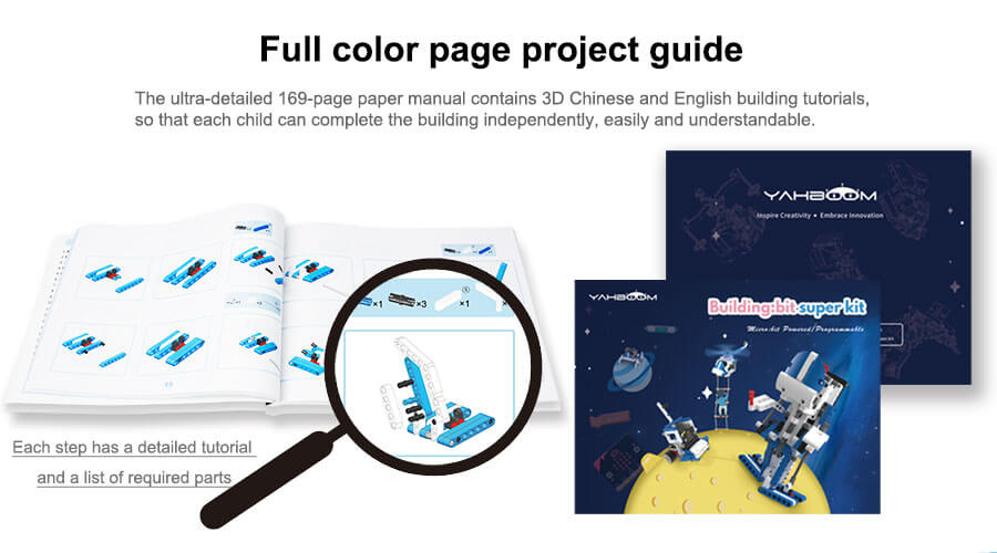 - 16 kinds of building block models + full-colour printing project instruction manual