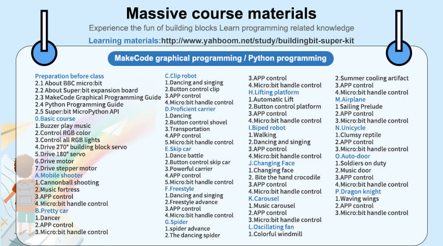 - Designed based on BBC Micro: bit, equipped with Super: bit professional expansion board.
