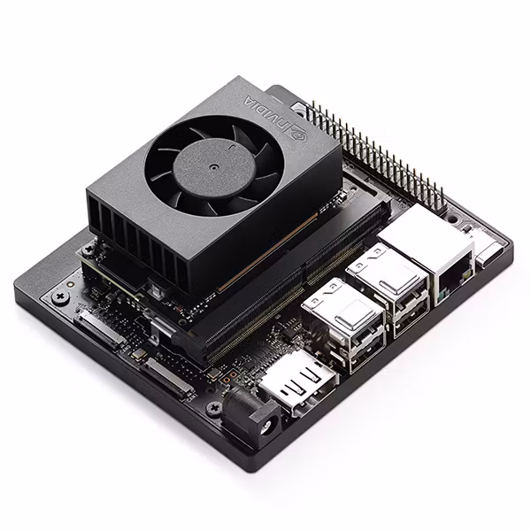 - Hand-size edge AI device: compact size at 100mm x79mm x 21mm, includes Jetson Orin™ Nano 8GB module, a heatsink with a fan and a power adapter.